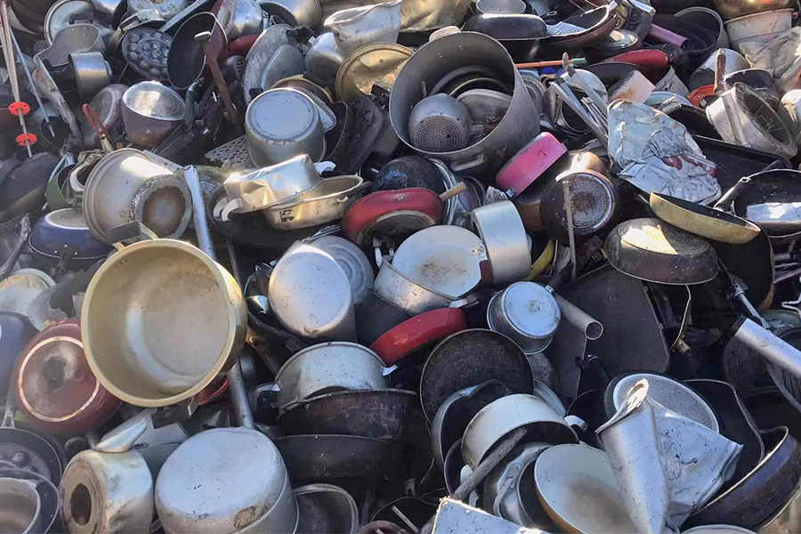 アルミコロやアルミ鍋、フライパン、やかんなどのアルミ製品の屑全般を指します。これらにはプラスチック製の取っ手や部品が付いている場合も含まれます。日常生活で使用された製品が多いため、プラスチックやゴム、塗装、汚れなどの付物が混在していることが一般的です。しかし、付物やダストの割合が非常に多い場合、アルミガラとしての取り扱いができず、リサイクル処理が困難になるため、買取をお断りすることもあります。また、状態や種類によっては荷受け自体ができない場合もあります。